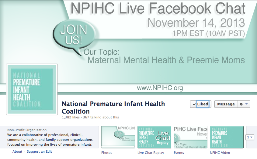 Hi All! November is National Prematurity Awareness Month and already shaping up to be a busy and exciting time. I wanted to be sure and tell you about a few exciting upcoming events. On Thursday, November 14th, I’ll be participating as a panelist on a live Facebook chat sponsored by the National Premature Infant Coalition (NPIHC). The … Continue Reading