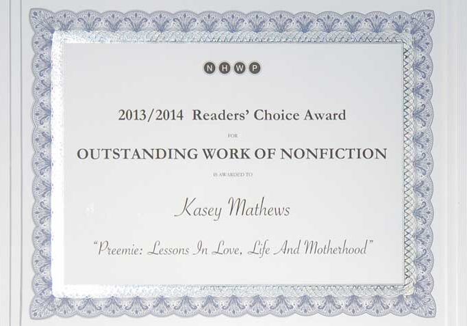 Hello Dearest Friends! I have exciting news to share and deepest thanks to extend! Preemie won New Hampshire’s 2013/2014 Reader’s Choice Award for Outstanding Work of NonFiction! Here’s the photo to prove it! There were many wonderful books up for the nomination, and it felt like a real long shot, but you, dear readers, did … Continue Reading