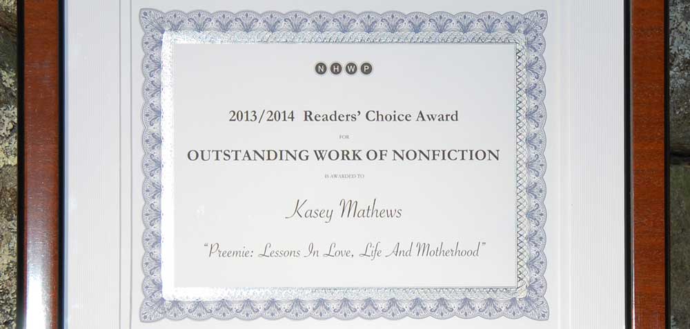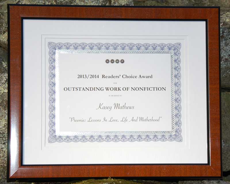 Preemie won New Hampshire’s 2013/2014 Reader’s Choice Award for Outstanding Work of NonFiction!