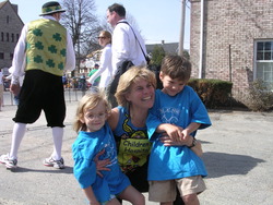 Thousands of runners, who’d been there since the pre-dawn hours occupied patches of grass on beach towels spread beneath trees. Their nervous tension mingled in the air with the smell of fried dough and sausages and onions wafting from the food carts lining the town green. The atmosphere left me jittery and awestruck, but the kids sucked it up like juice through a crazy-straw. I had to suppress my desire to approach runners and launch an investigation into why they would possibly put themselves through the rigors of running a marathon. The longest distance I’d ever run was 5 miles, and I swore I’d never do that again.