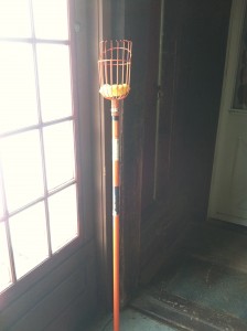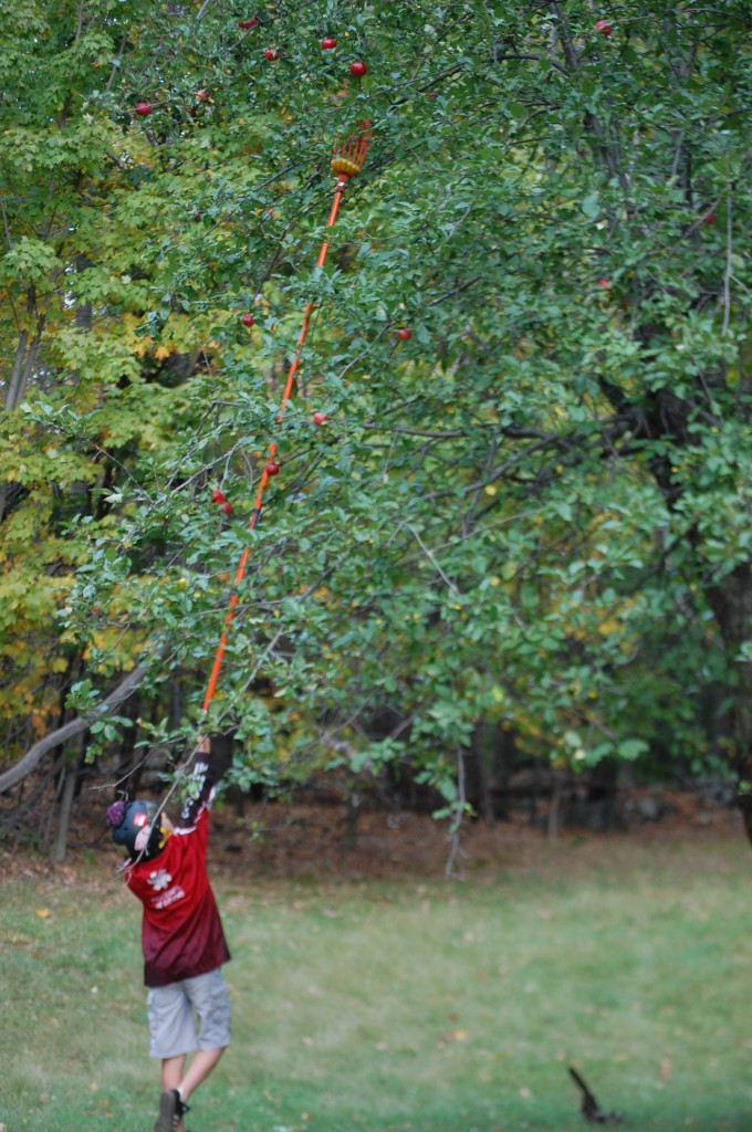 Remember when I thought I wanted to be a farmer? Well, still no chickens or cows in our backyard, but I did buy this handy fruit-picker, and we’ve been pulling apples down from the tree in our own yard!