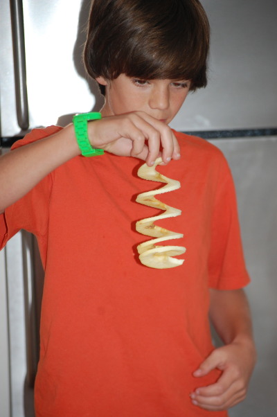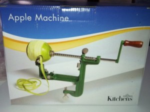 It peels the apples in one long continuous peel and also slices it into a perfect ring.