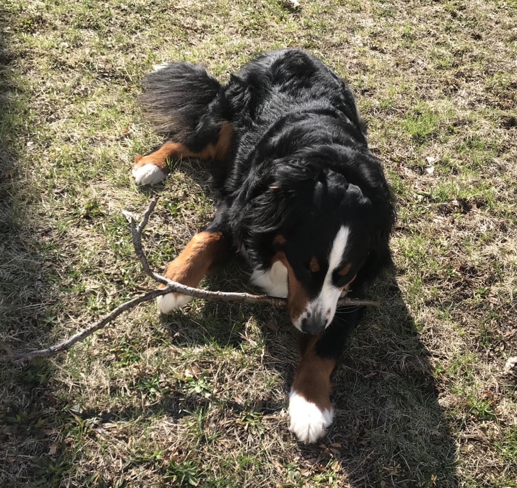 …my friend doesn’t have a big Bernese Mountain dog helper, who also happens to be a stick collector!!!